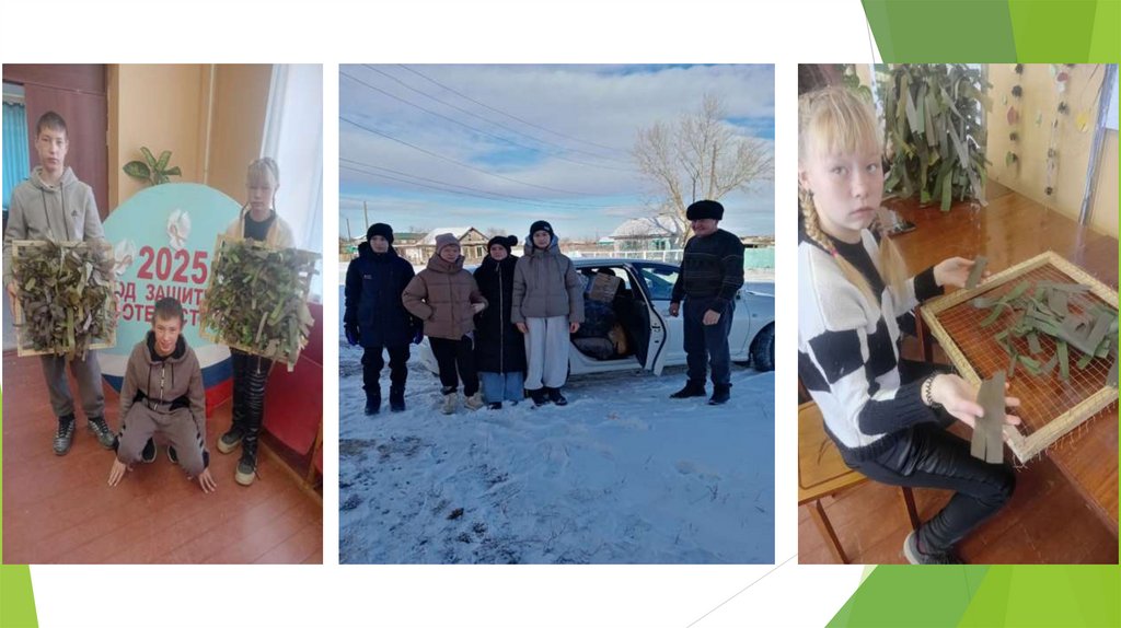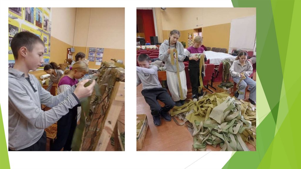 Сотрудничаем с волонтёрской группой «Багул»плетём сети, нашлемники, готовим материал,отгружаем посылки.