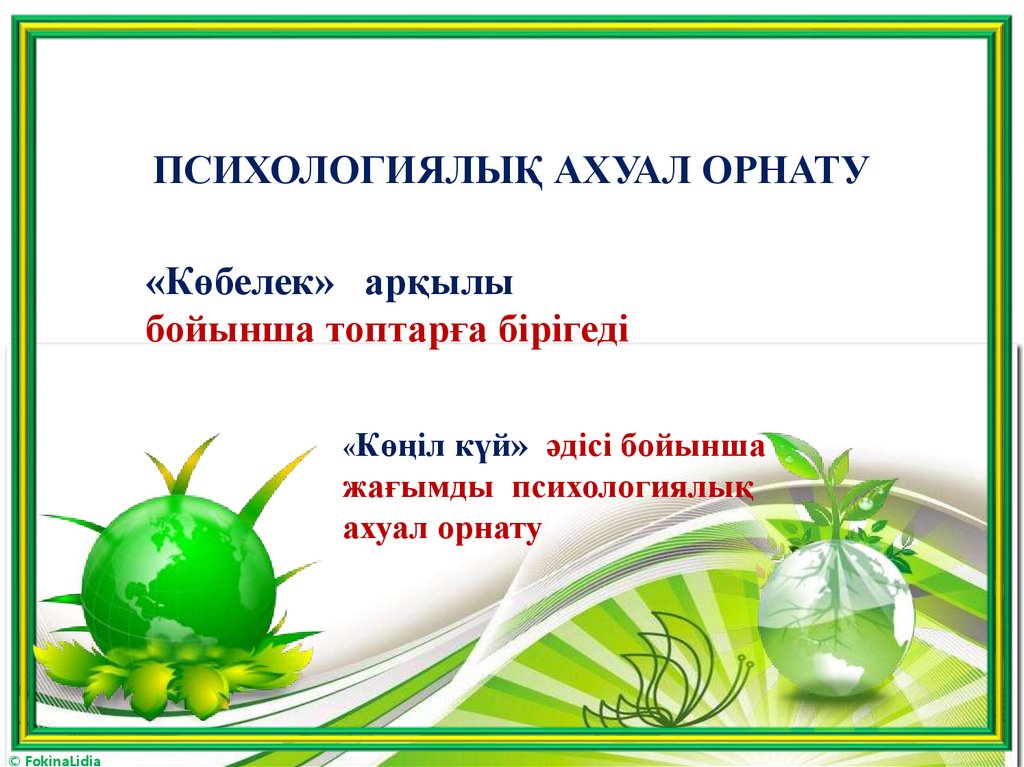 ПСИХОЛОГИЯЛЫҚ АХУАЛ ОРНАТУ«Көбелек» арқылы