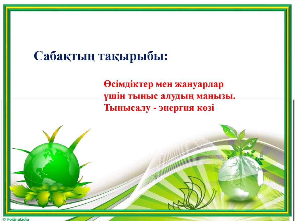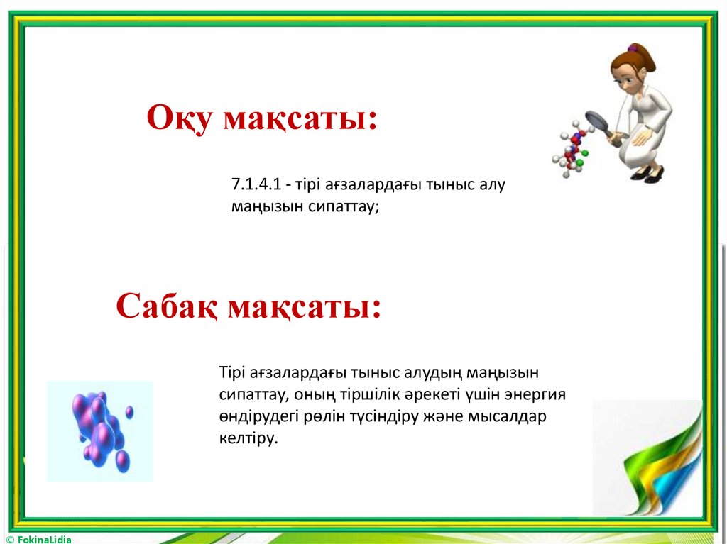 Оқу мақсаты:7.1.4.1 - тірі ағзалардағы тыныс алу
