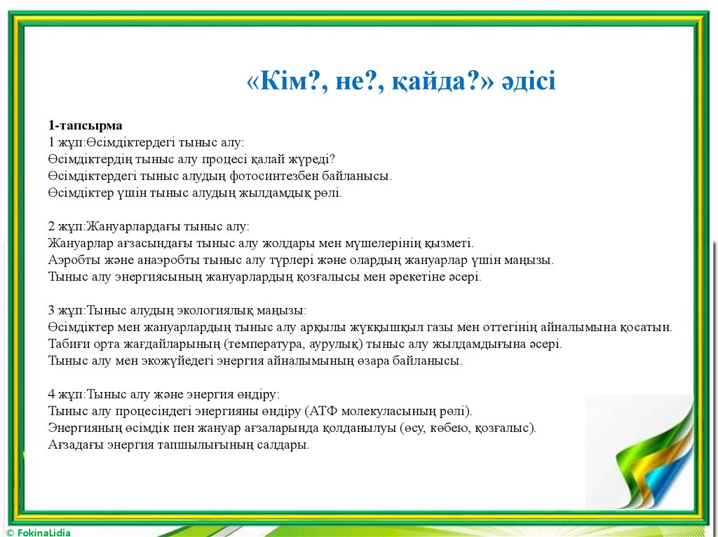 «Кім?, не?, қайда?» әдісі1-тапсырма