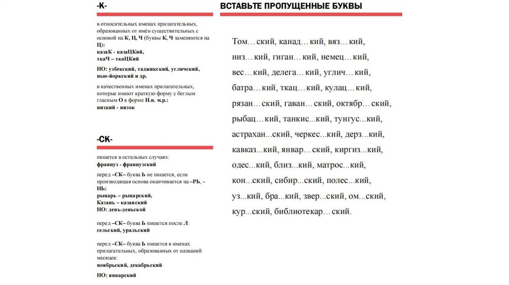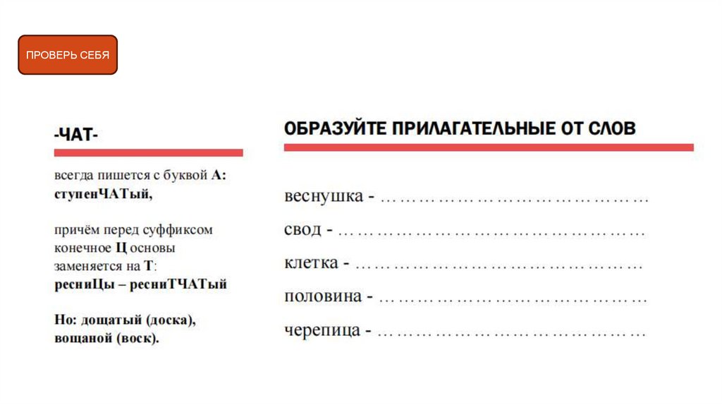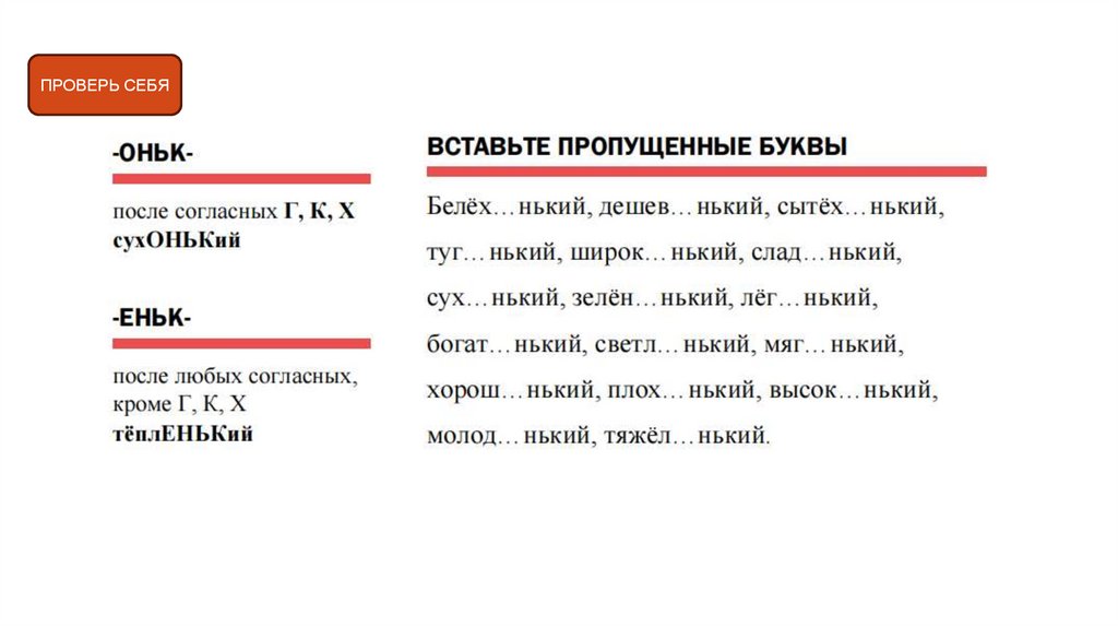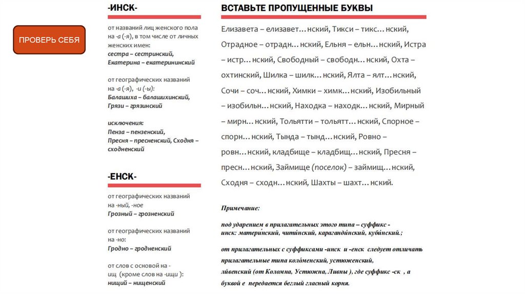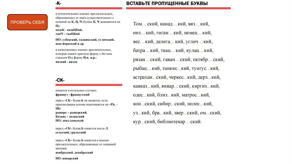ПРОВЕРЬ СЕБЯ17. СУФФИКСЫ –СК- И –К-