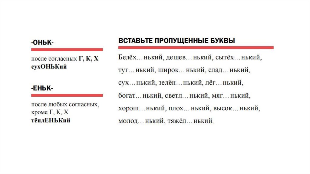 Суффиксы -ЕВАТ-, -ОВАТ-, -ЕНЬК-,