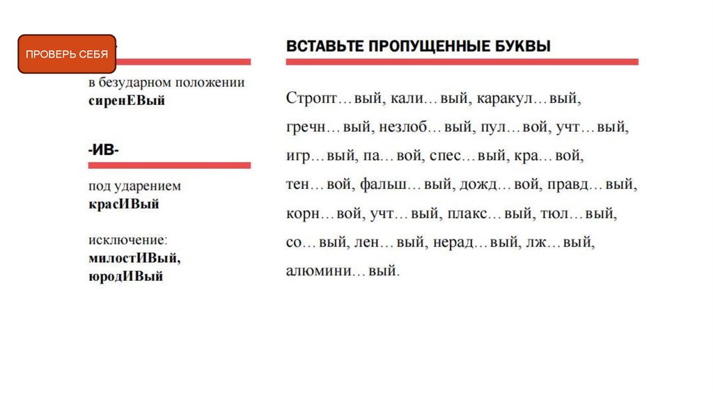 ПРОВЕРЬ СЕБЯ9. ПРИЛАГАТЕЛЬНОЕ