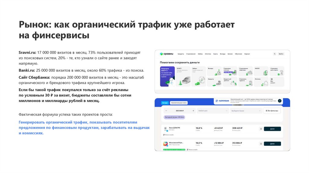 Banki.ru: 25 000 000 визитов в месяц, около 60% трафика - из поиска.
