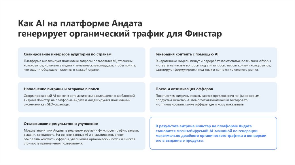 Как AI на платформе Андатагенерирует органический трафик для Финстар