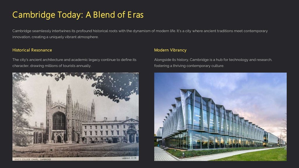 Cambridge Today: A Blend of E rasCambridge seamlessly intertwines its profound historical roots with the dynamism of modern life. It's a city where ancient traditions meet contemporary