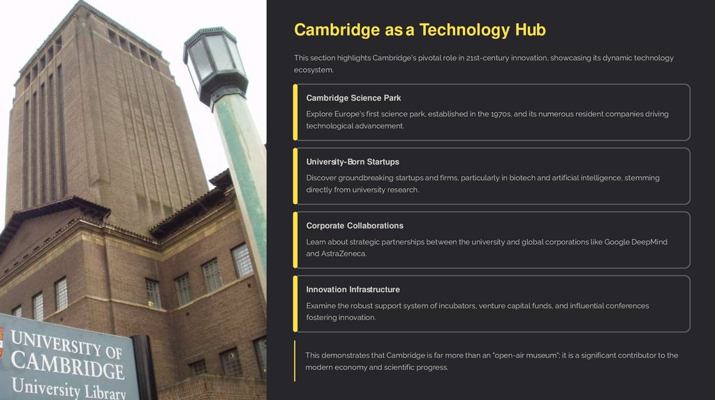 Cambridge as a Technology HubThis section highlights Cambridge's pivotal role in 21st-century innovation, showcasing its dynamic technology
