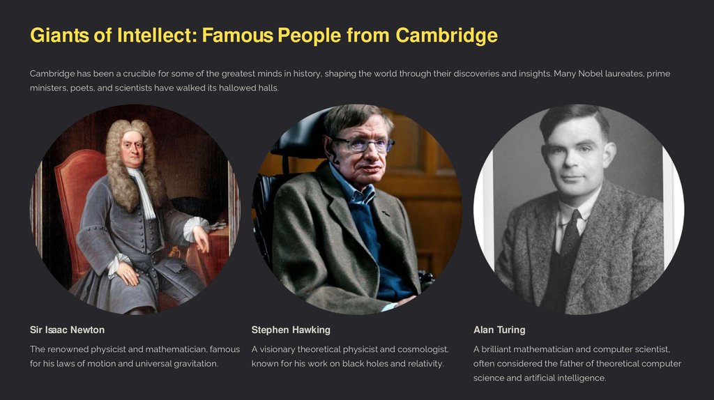 Giants of Intellect: Famous People from CambridgeCambridge has been a crucible for some of the greatest minds in history, shaping the world through their discoveries and insights. Many Nobel laureates, prime