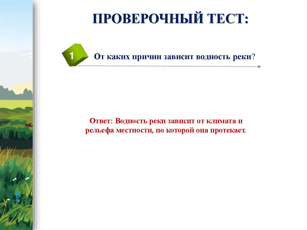 Ответ: Водность реки зависит от климата и