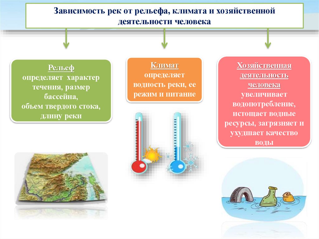 Зависимость рек от рельефа, климата и хозяйственнойдеятельности человека