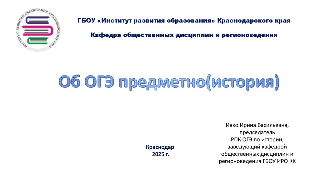 ГБОУ «Институт развития образования» Краснодарского краяКафедра общественных дисциплин и регионоведения