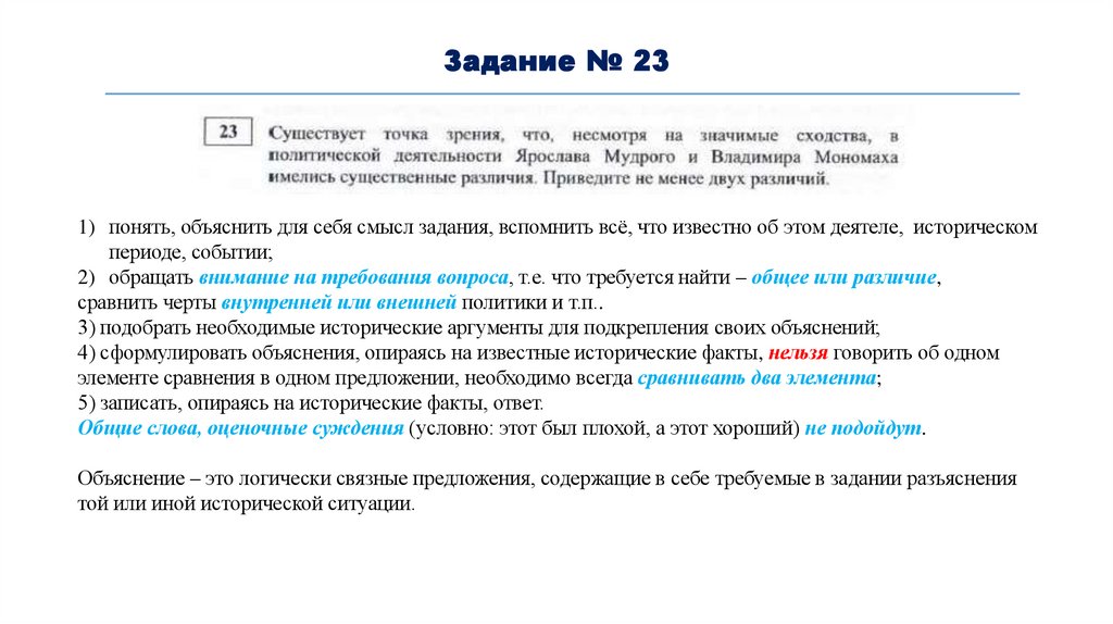 4) сформулировать объяснения, опираясь на известные исторические факты, нельзя говорить об одном
