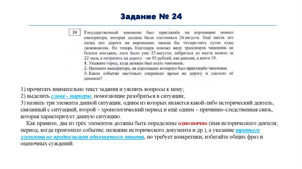 3) назвать три элемента данной ситуации, одним из которых является какой-либо исторический деятель,
