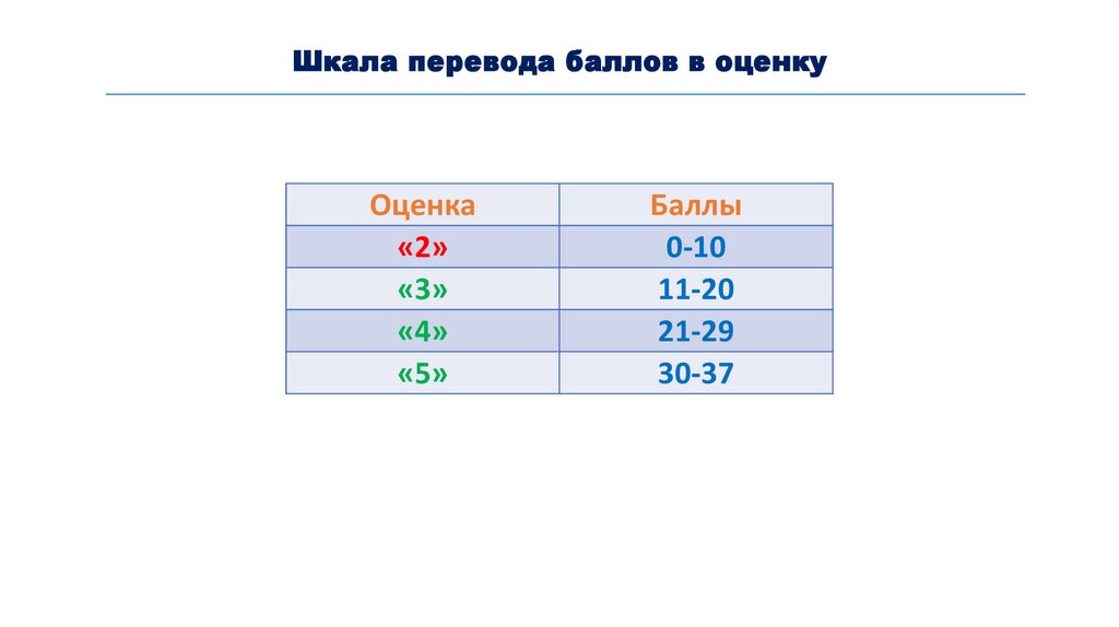 Шкала перевода баллов в оценкуОценка