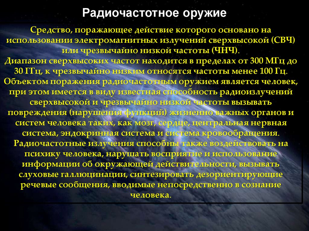 Радиочастотное оружиеСредство, поражающее действие которого основано на