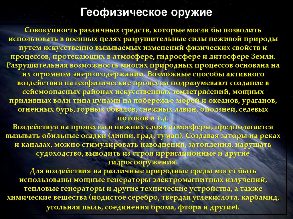 Геофизическое оружиеСовокупность различных средств, которые могли бы позволить