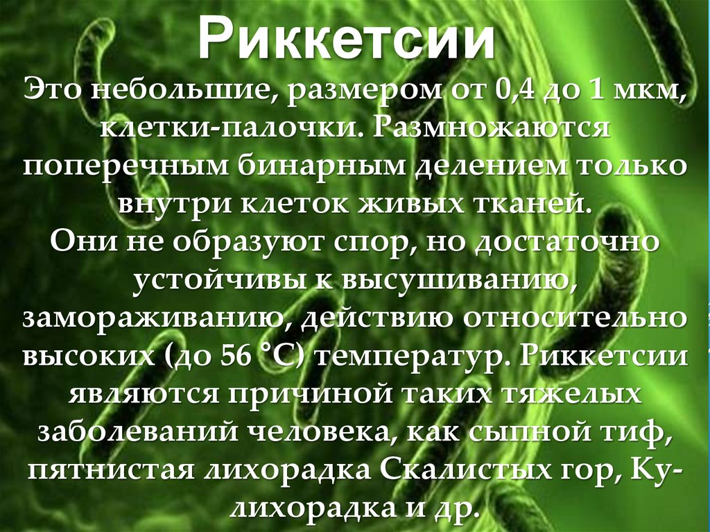 РиккетсииЭто небольшие, размером от 0,4 до 1 мкм,