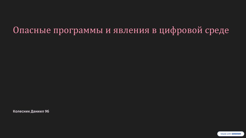 Опасные программы и явления в цифровой средеКолесник Даниил 9б