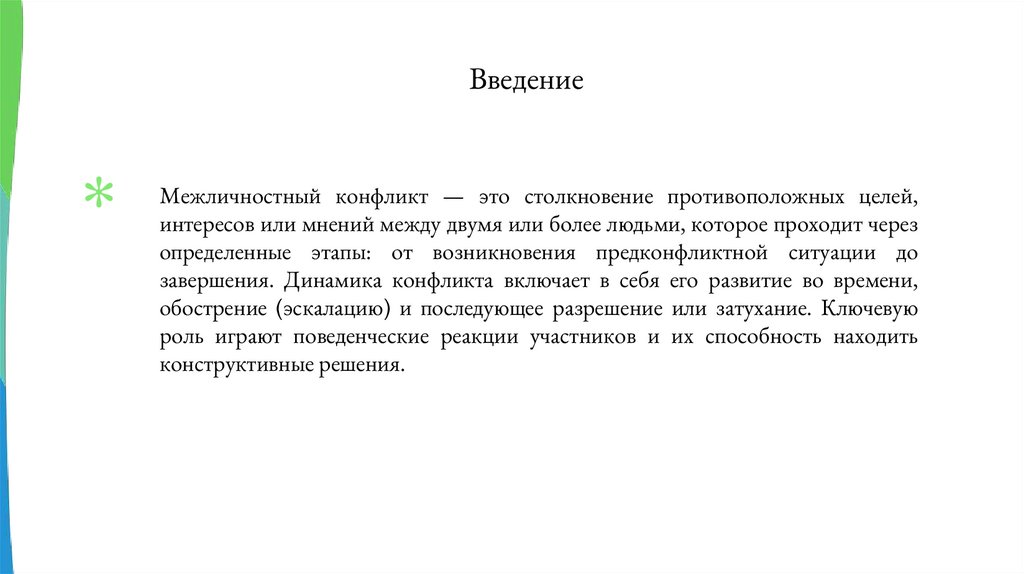 ВведениеМежличностный конфликт — это столкновение противоположных целей,