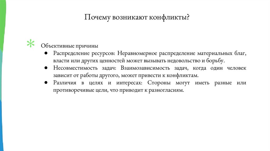Почему возникают конфликты?Объективные причины