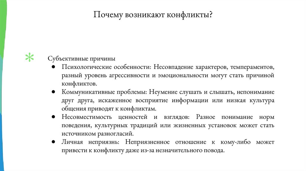 Почему возникают конфликты?Субъективные причины