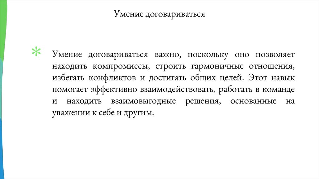 Умение договариватьсяУмение договариваться важно, поскольку оно позволяет