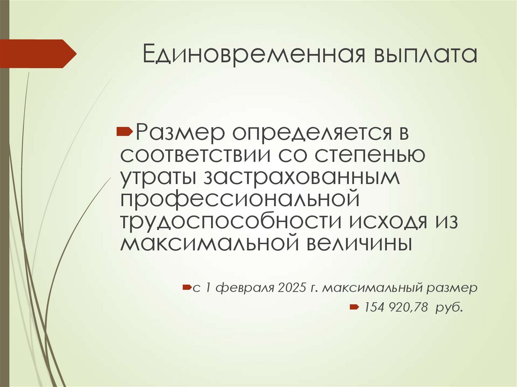 Единовременная выплатаРазмер определяется в