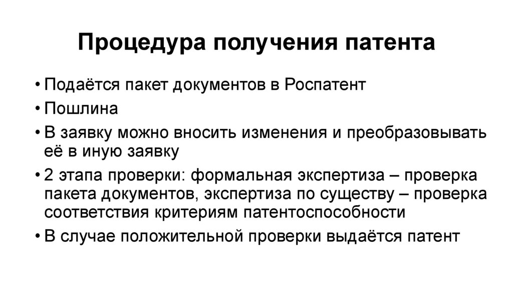 - Выдача патентов и