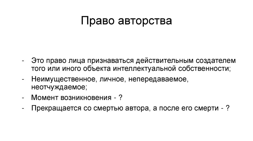 Интеллектуальные права состоят из двух элементов: личного (неимущественного) – право авторства, и