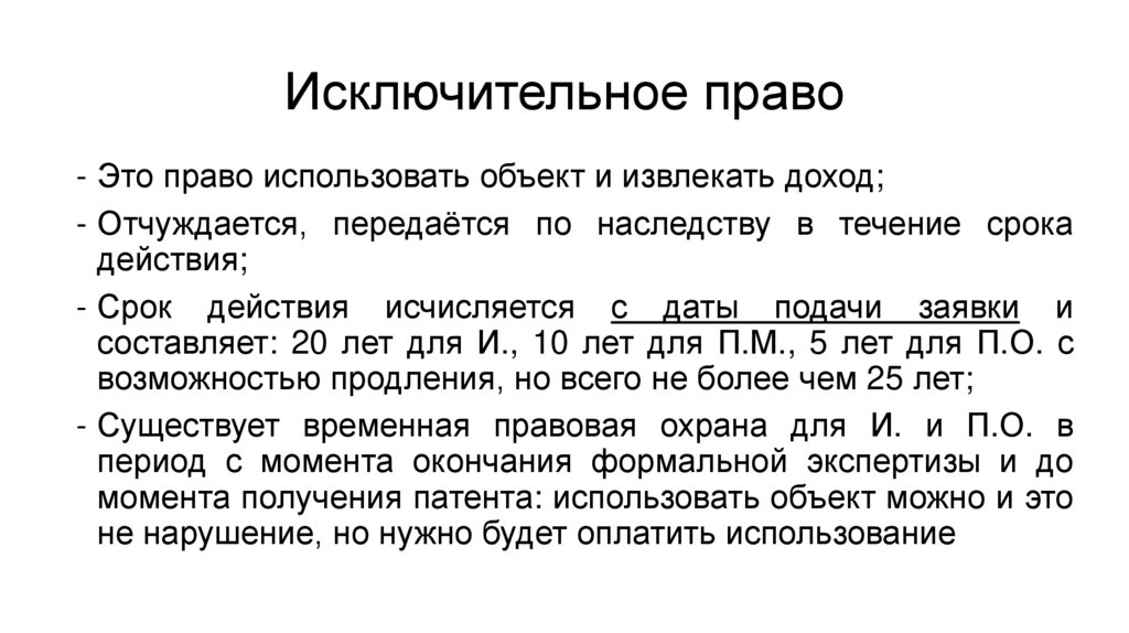 • Исключительное право неотчуждаемо;