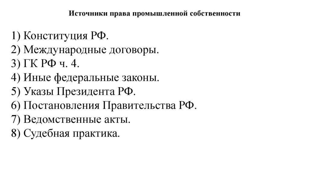 Источники права промышленной собственности1) Конституция РФ.