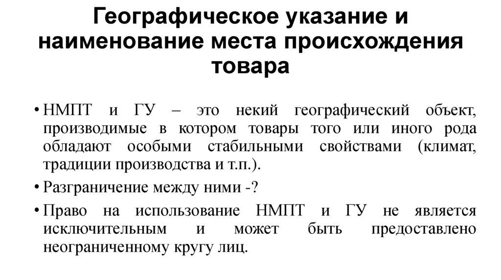 обслуживания, географические указания