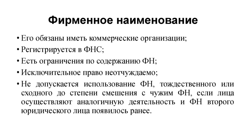 Фирменное наименование• Его обязаны иметь коммерческие организации;