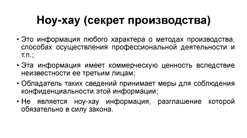 Ноу-хау (секрет производства)• Это информация любого характера о методах производства,