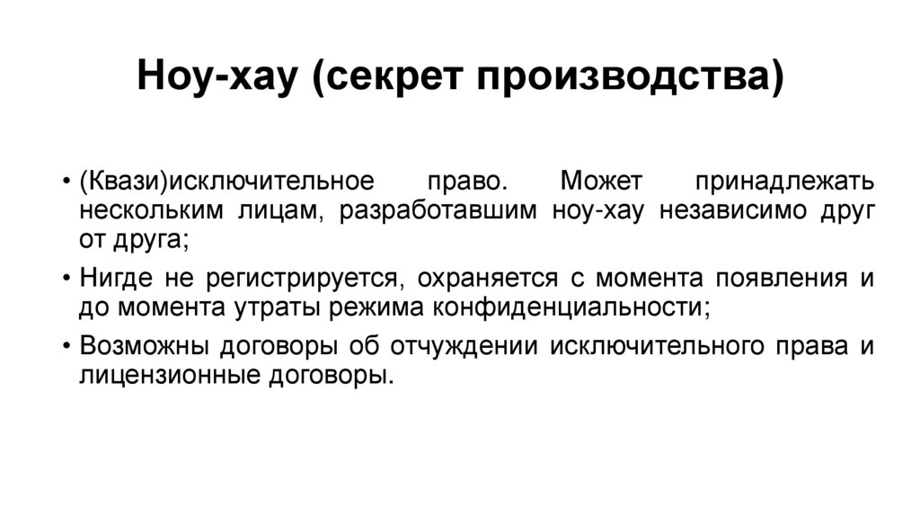 Ноу-хау (секрет производства)• (Квази)исключительное
