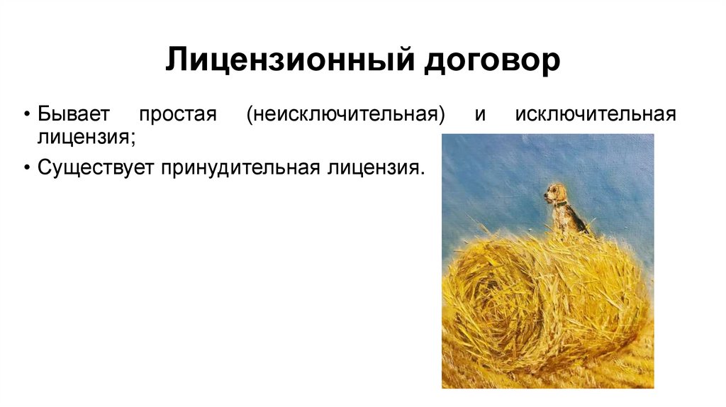 Лицензионный договор• Бывает простая (неисключительная)