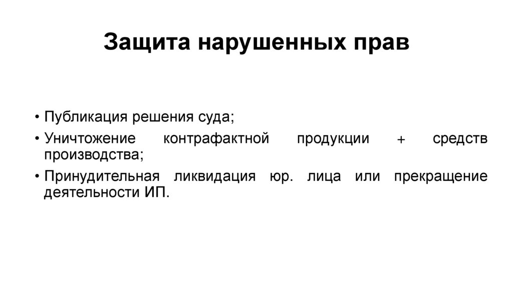 Защита нарушенных прав• Публикация решения суда;