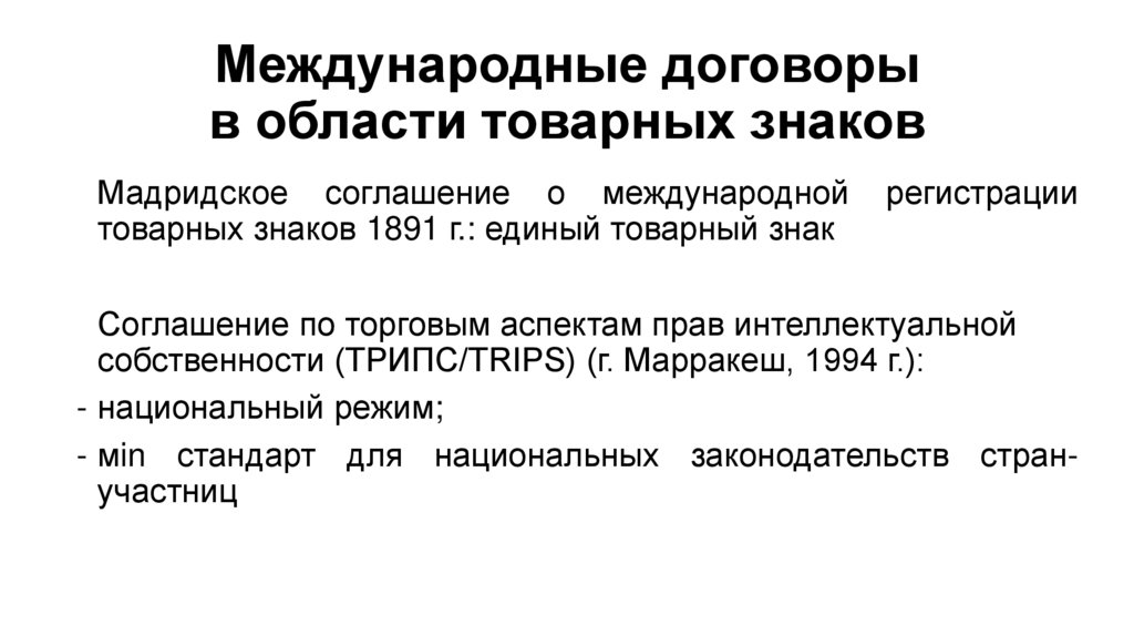 Международные договорыв области товарных знаков