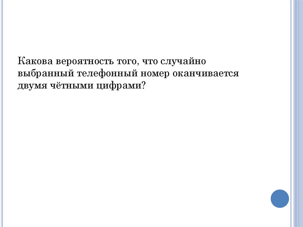 Какова вероятность того, что случайновыбранный телефонный номер оканчивается