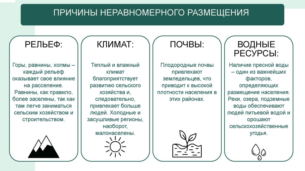 ПРИЧИНЫ НЕРАВНОМЕРНОГО РАЗМЕЩЕНИЯРЕЛЬЕФ: