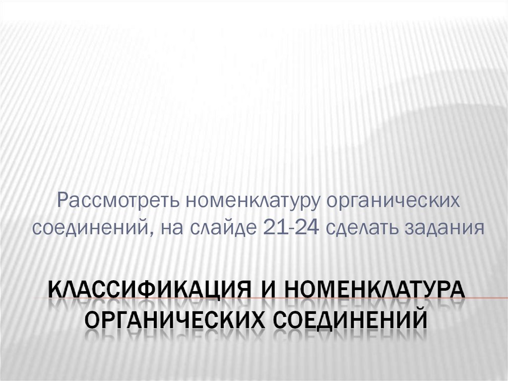 Рассмотреть номенклатуру органическихсоединений, на слайде 21-24 сделать задания