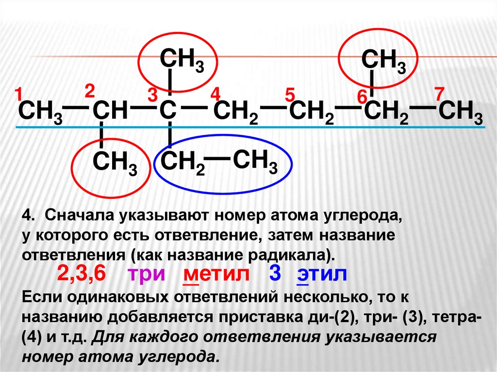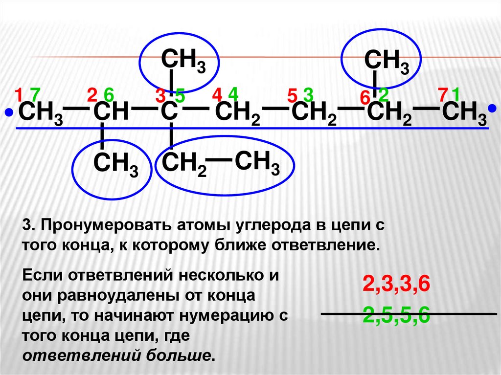 3. Пронумеровать атомы углерода в цепи с