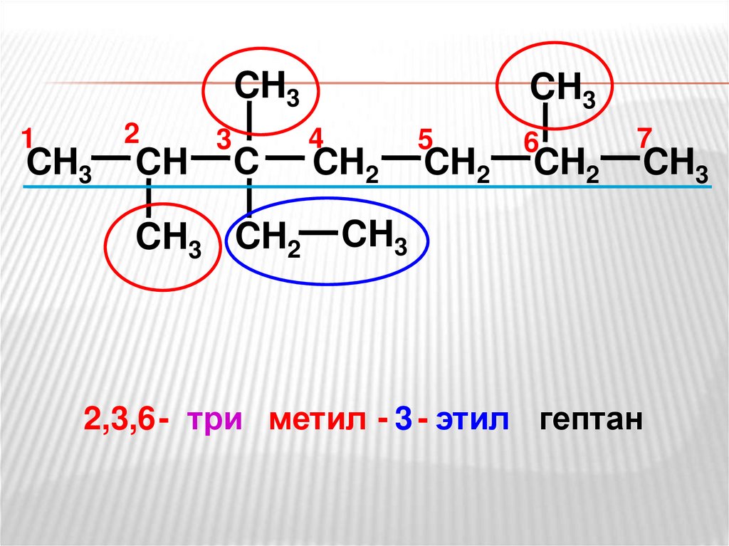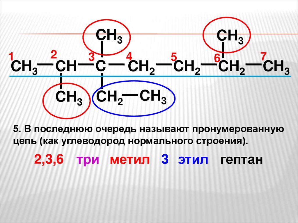 Такая цепь называется главной или основной. Нумерацию цепи начинают с того