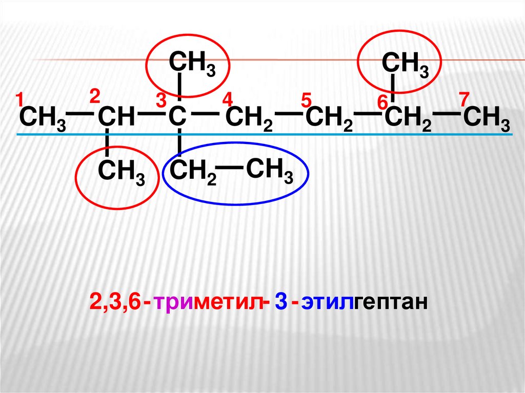 2,3,6 - три метил - 3 - этил гептан