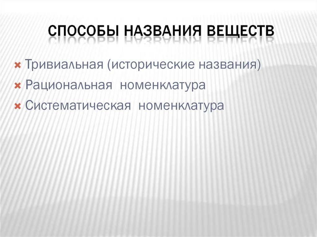 Тривиальная (исторические названия)Рациональная номенклатура