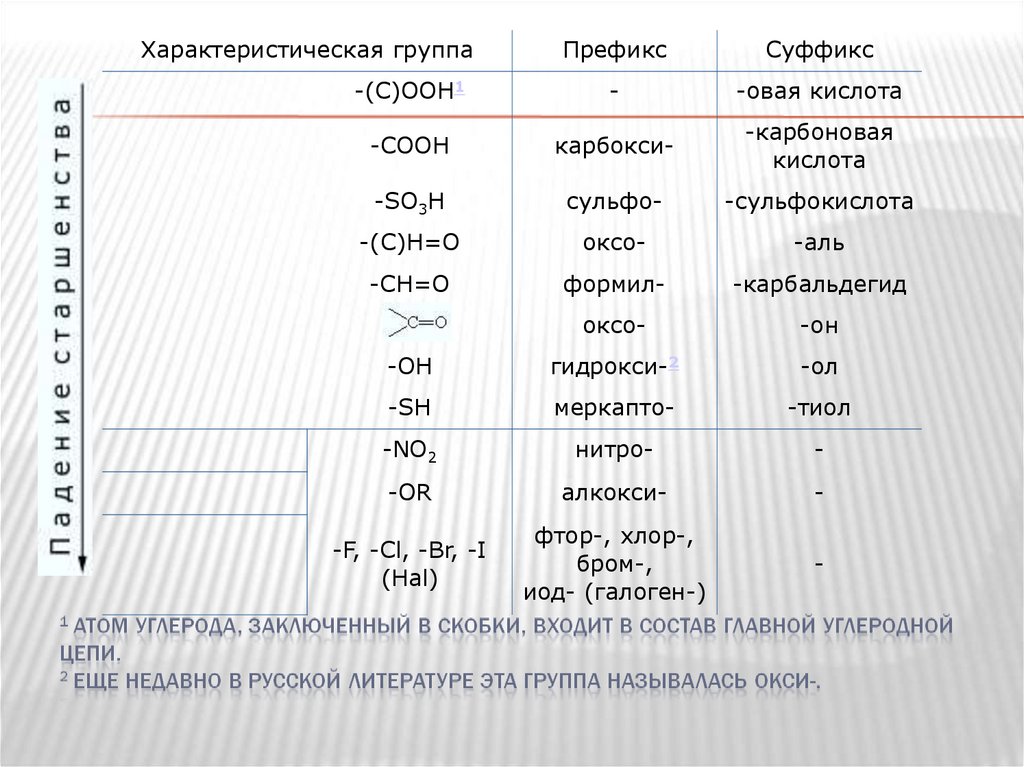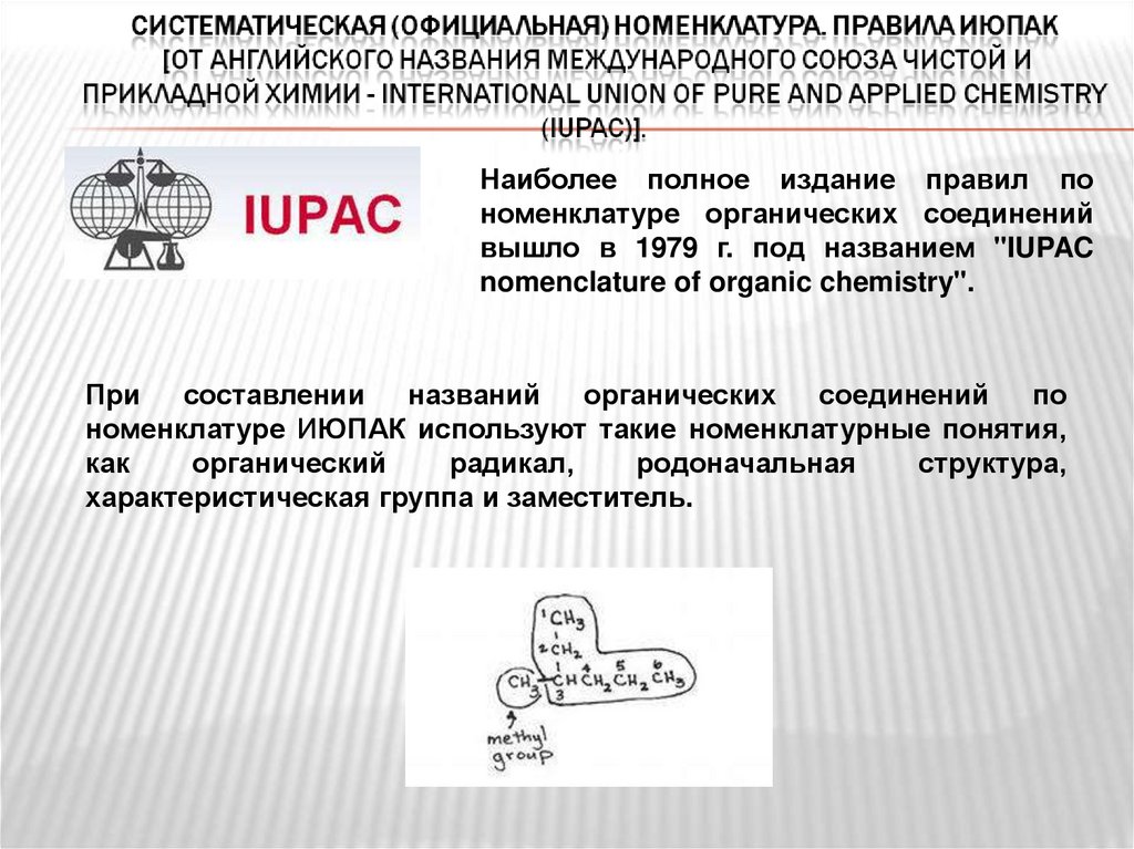 номенклатуре ИЮПАК используют такие номенклатурные понятия,
