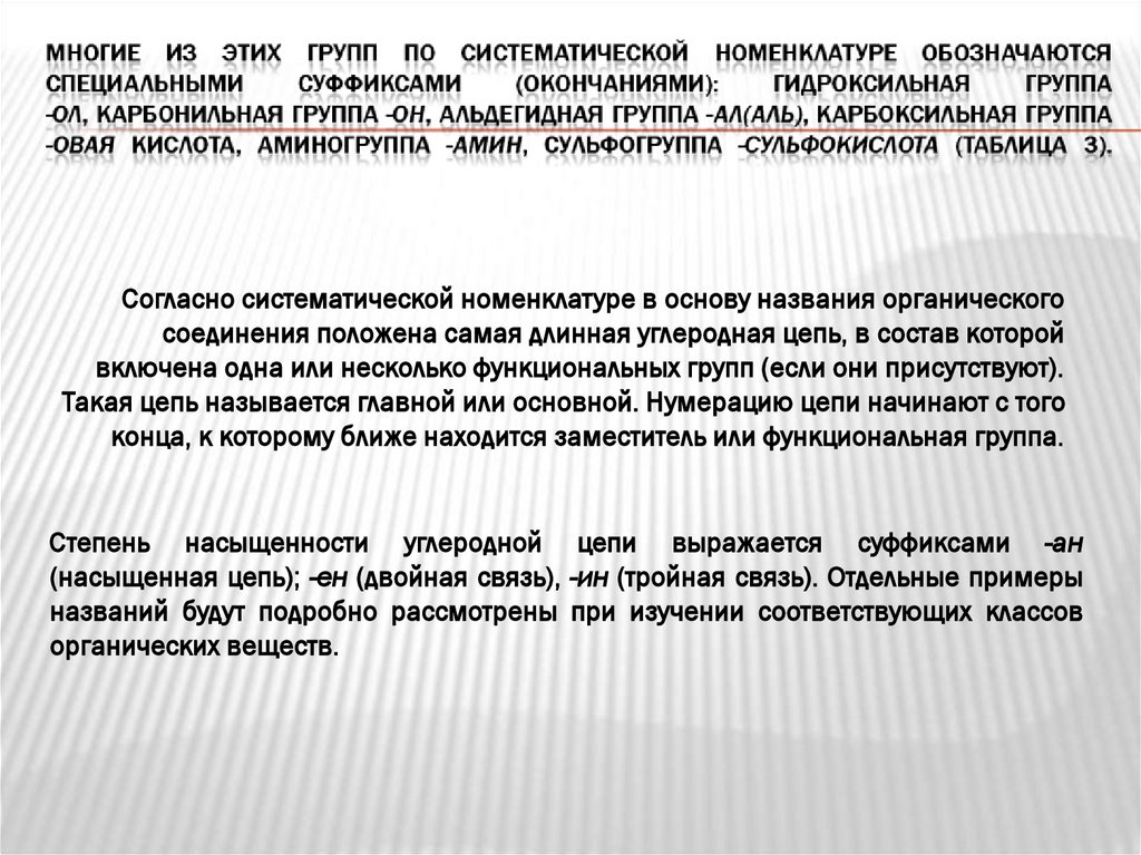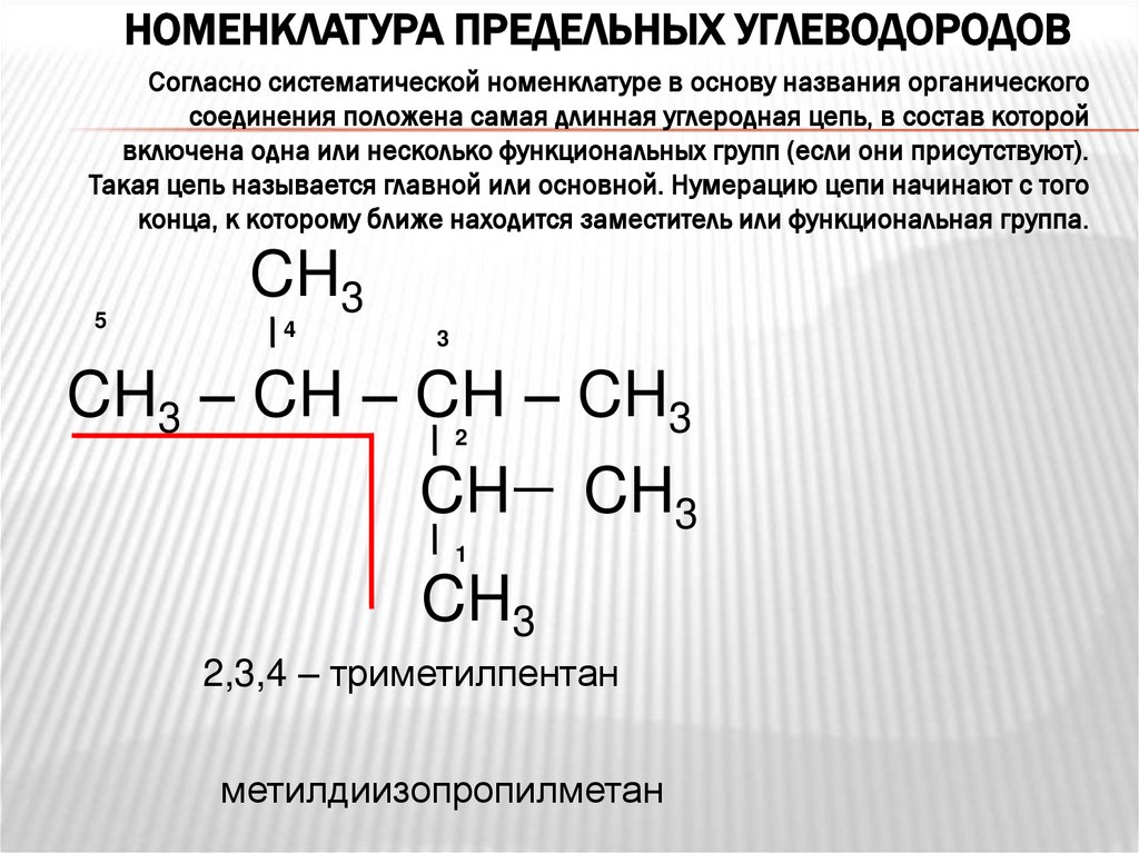 НОМЕНКЛАТУРА ПРЕДЕЛЬНЫХ УГЛЕВОДОРОДОВСогласно систематической номенклатуре в основу названия органического