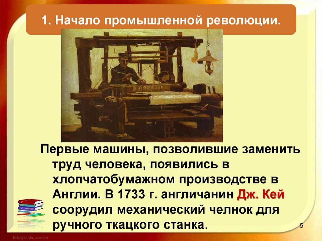 1. Начало промышленной революции.Первые машины, позволившие заменить