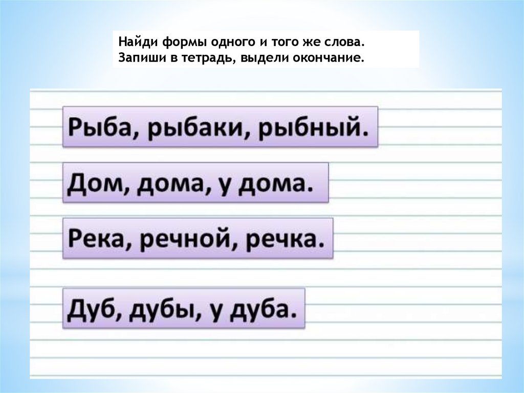 Найди формы одного и того же слова.