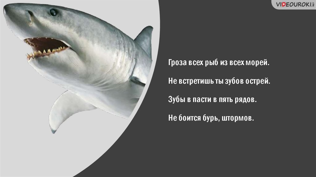Гроза всех рыб из всех морей.Не встретишь ты зубов острей.